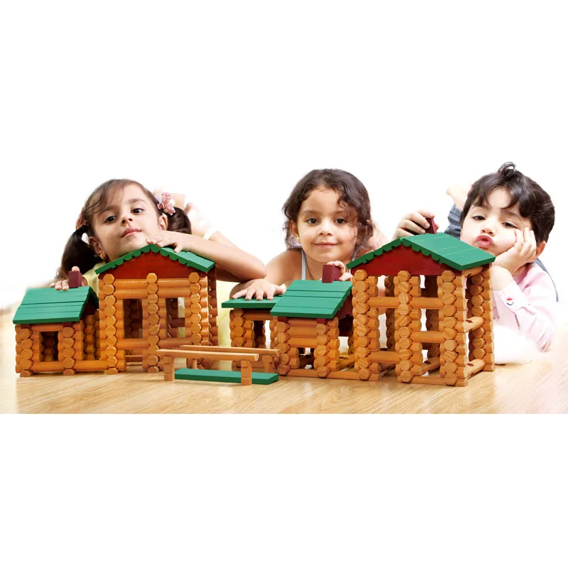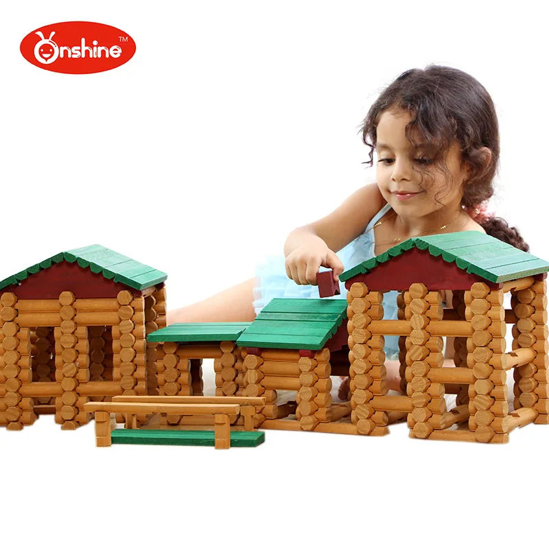 HIGH QUALITY Onshine DIY House 382pcs Wooden Primitive Tribe Log Set Building Blocks Architecture Toys for Kids