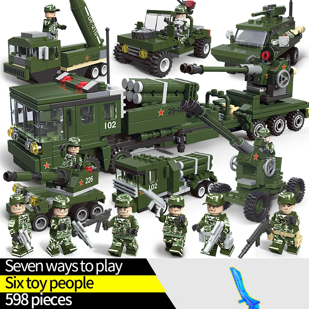 598PCS Compatible LegoINGlys Building Blocks Boy Figures Bricks Military War Missile Car Block Chri