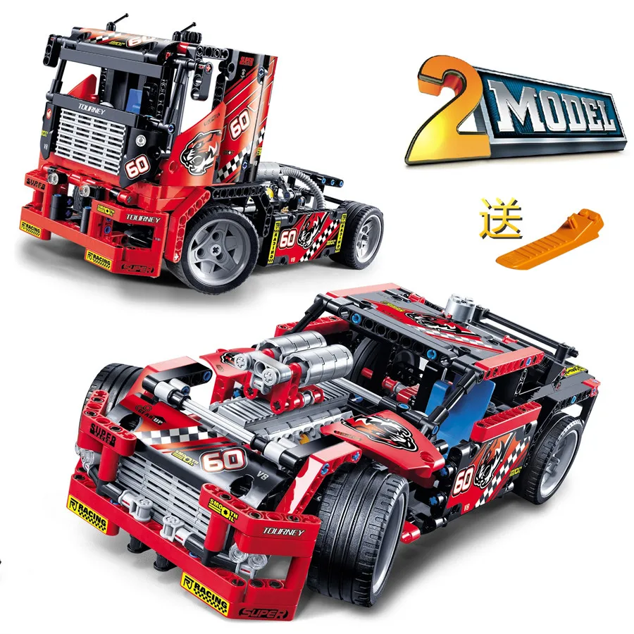 Review New 608pcs Race Truck Car 2 In 1 Transformable Model Building Block Sets 3360 DIY Toys Free Shippin