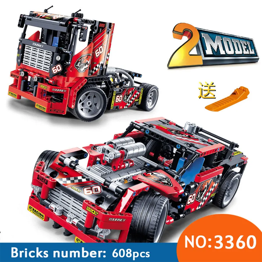 New 608pcs Race Truck Car 2 In 1 Transformable Model Building Block Sets 3360 DIY Toys Free Shippin